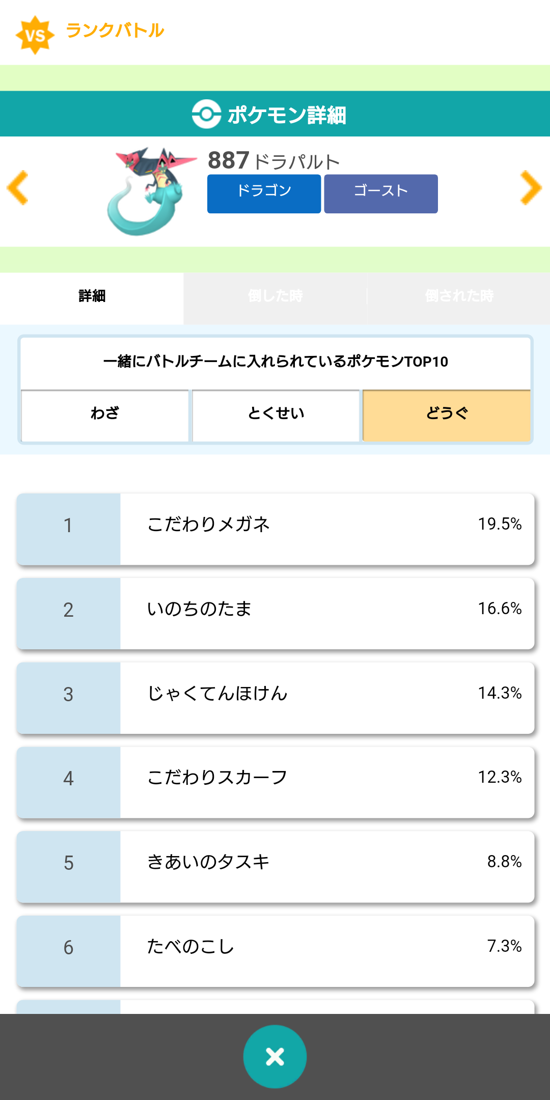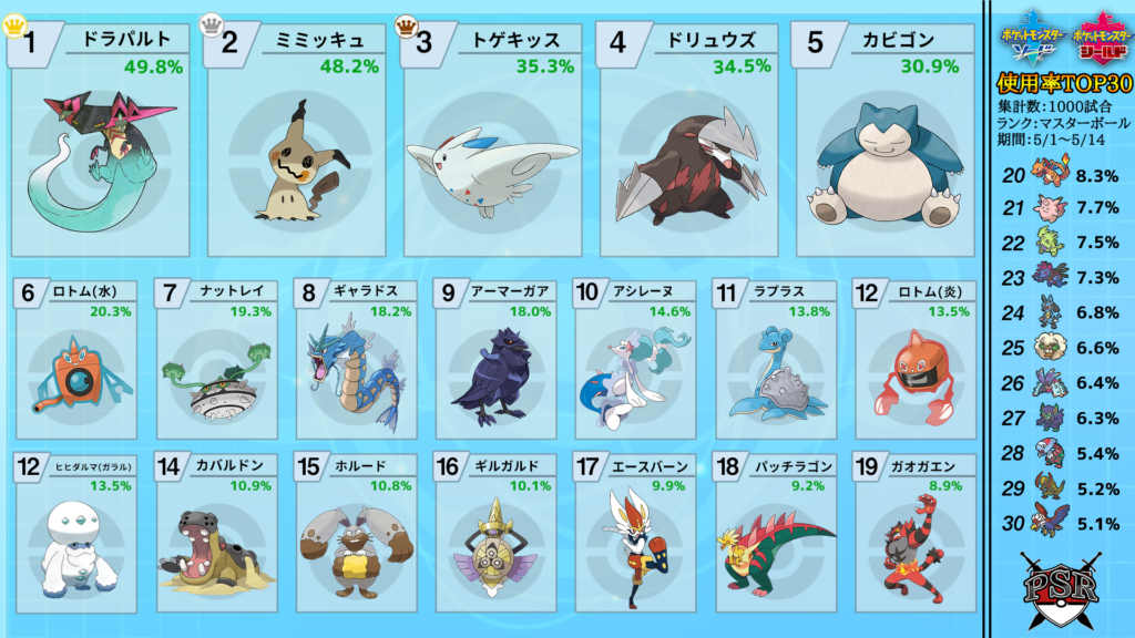 ドラパが倒されたポケモン1位ドラパ